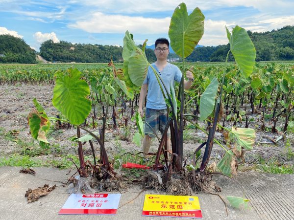 今年6月份由于雨水過(guò)多,毛芋普遍長(zhǎng)勢(shì)不好,植株矮小易倒塌,但渭田鎮(zhèn)的種植大戶丁明壽使用鄂中生物高分子15-10-20作追肥的5畝地,卻沒(méi)受天氣的影響,毛芋漲勢(shì)整齊,葉片厚重,莖稈粗壯,挖起來(lái)的芊頭也比周邊其他毛芊個(gè)頭大了一圈,成為渭田鎮(zhèn)毛芋地中“最靚的仔”。該地在用肥量減少20%的前提下不僅未減產(chǎn),還比往年產(chǎn)量更高。(福建公司 王新)