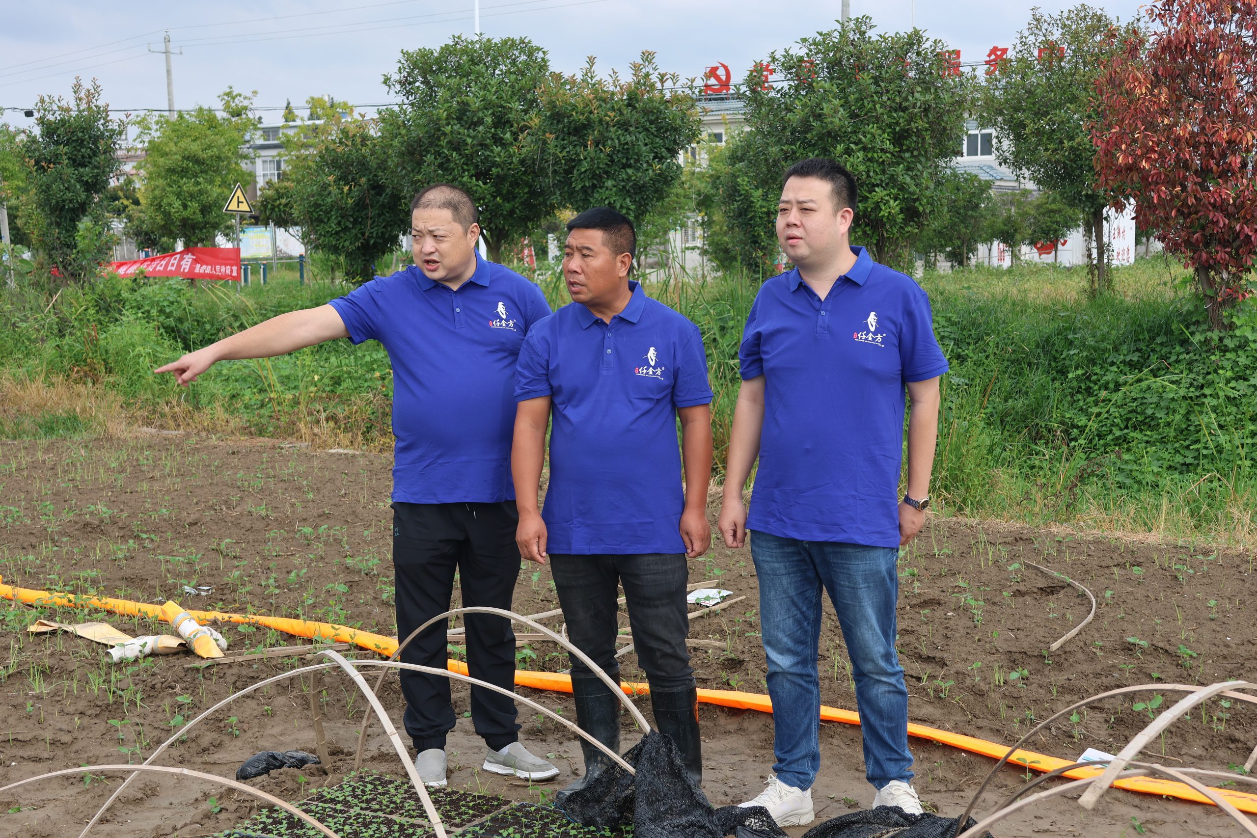 龔斌(左一)與種植戶查看蔬菜長勢