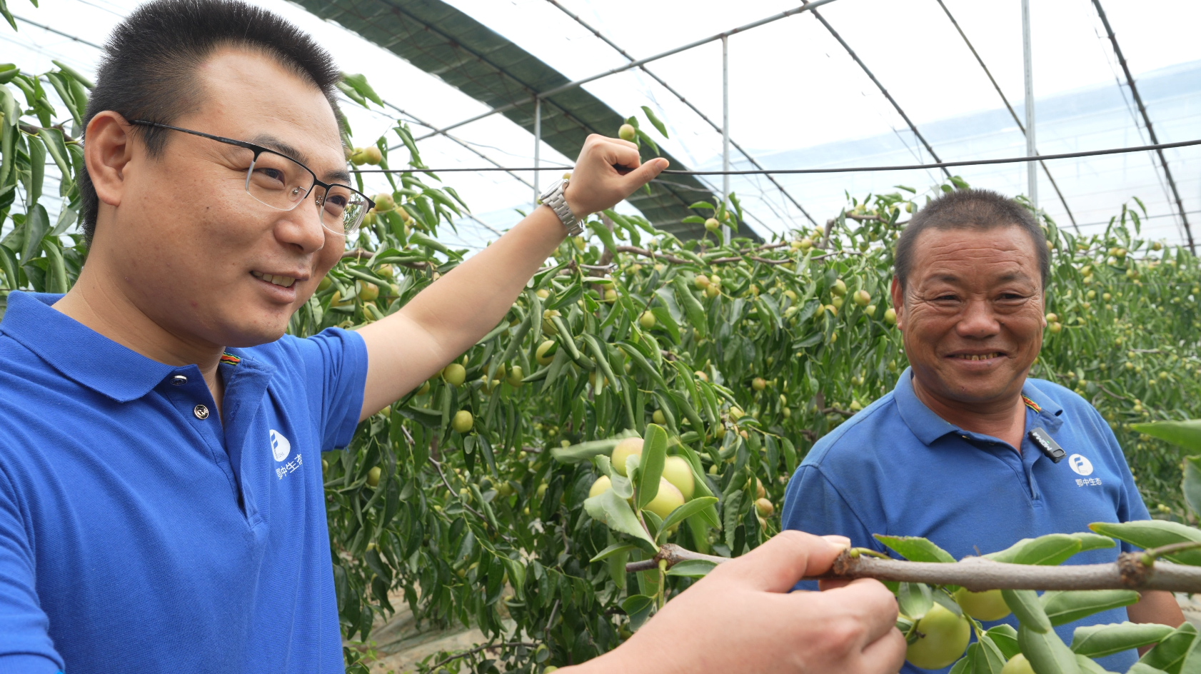 6月初的大荔,烈日炎炎,果事正忙。兩宜鎮(zhèn)南貝村張新忠的冬棗示范園里,一排排標準化溫室大棚,整齊排列,一顆顆果實飽滿的冬棗綴滿枝頭,散發(fā)著誘人的光澤,讓人口舌生津。