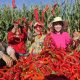 步入園中,眼前的景象令人心曠神怡——紅彤彤的葡萄串,宛如一排排整裝待發(fā)的勇士,披著秋日的霞光,驕傲地展示著它們的豐盈與飽滿。每一顆葡萄都像是精心雕琢的藝術品,色澤鮮亮,果粒緊實,散發(fā)著誘人的光澤,讓人忍不住想要伸手采摘,品嘗那來自大自然的甘甜饋贈。園中農戶們正忙著剪下葡萄和裝箱上車。