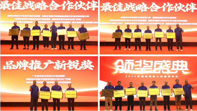 大會(huì)頒發(fā)了“最佳戰(zhàn)略合作伙伴”和“品牌推廣新銳獎(jiǎng)”,來(lái)自湘粵閩的21位優(yōu)秀經(jīng)銷商榮獲最佳戰(zhàn)略合作伙伴稱號(hào)。優(yōu)秀經(jīng)銷商代表湖南省湘西州吉首市金谷農(nóng)資經(jīng)營(yíng)部楊葉英、廣東省清遠(yuǎn)市飛鳴生態(tài)農(nóng)業(yè)發(fā)展有限公司何飛明分別上臺(tái)發(fā)言。