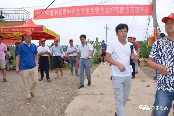 鄂中仟金方微生物生態(tài)復合肥蝦稻套餐肥就是根據(jù)區(qū)域蝦稻種養(yǎng)面積的擴大、水質、土壤狀況和蝦稻的營養(yǎng)需肥特點,運用生物科技,將特定微生物與中低含量復合肥復合配制而成。8月9日,鄂中生態(tài)鄂中仟金方示范田觀摩會在荊州市監(jiān)利縣新溝鎮(zhèn)順風村成功召開,監(jiān)利縣農業(yè)局耕地質量保護與肥料工作站站長段昌華,鄂中生態(tài)市場策劃部部長鄧君清,鄂南分公司經理彭敬祥,新溝鎮(zhèn)農技推廣中心主任肖開文和監(jiān)利、潛江、仙桃、江陵、公安、松滋、石首、枝江、洪湖中醫(yī)養(yǎng)護隊隊員及經銷商、周邊村民230余人參與觀摩會。監(jiān)利縣電視臺參與現(xiàn)場拍攝。