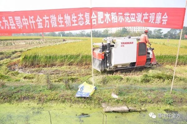 10月21日,天剛放晴,鄂中生態(tài)東南大區(qū)總經(jīng)理李九稽率鄂中仟金方中醫(yī)養(yǎng)護(hù)隊員,在蕪湖市無為縣泉塘鎮(zhèn)竹元村召開了搶收中的鄂中仟金方水稻示范田現(xiàn)場測產(chǎn)觀摩會。來自無為縣土肥站農(nóng)技專家、鄂中生態(tài)農(nóng)化專員、渠道商、科技示范戶、農(nóng)業(yè)專家及周邊種糧大戶共100余人,現(xiàn)場觀摩見證了鄂中仟金方水稻測產(chǎn)全過程。國內(nèi)知名媒體華文傳媒參與了現(xiàn)場二次拍攝見證(6月25日,在該示范田召開水稻分蘗期觀摩會,外國農(nóng)業(yè)學(xué)者等多名專家見證了鄂中仟金方微生物生態(tài)復(fù)合肥的顯著肥效)。在嚴(yán)峻的災(zāi)情面前,在農(nóng)民對仟金方究竟能否增產(chǎn)增收的觀望情況下,仟金方示范田測產(chǎn)結(jié)果怎樣?能否增產(chǎn)增收?都面臨著迫切的期盼!