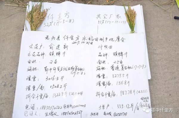安徽無為縣晚稻測產(chǎn)觀摩會:再次見證鄂中仟金方減肥增效的傳奇故事!