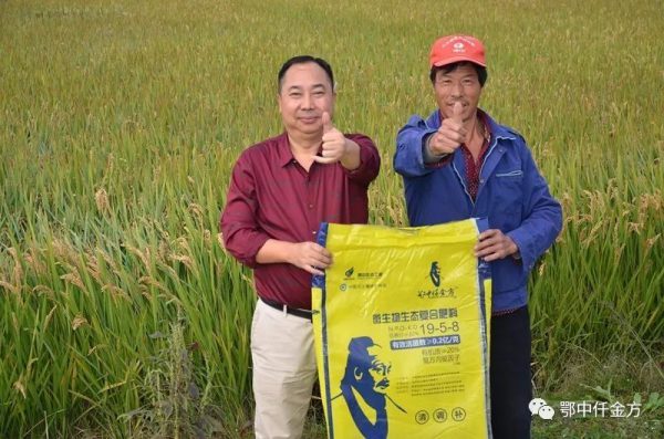 中南大區(qū)總經(jīng)理李九稽總結(jié)分析介紹:鄂中仟金方是把無機養(yǎng)分、有機質(zhì)、微生物菌群及復(fù)合內(nèi)驅(qū)因子有機結(jié)合于一體的綜合集成科技成果,體現(xiàn)無機化學(xué)肥料、有機肥料以及微生物肥料的綜合效果,是當(dāng)前農(nóng)作物的首選肥料。鄂中仟金方肥料能夠利用空氣中的氮,通過有益菌生長代謝產(chǎn)生相應(yīng)的酶和酸,可對土壤中難溶性的磷、鉀肥(土壤中難溶性磷肥占95%,難溶性鉀占98%)進(jìn)行分解,從而成為水稻所能吸收的磷鉀營養(yǎng)。因此能夠大大提高水稻對肥料的利用率,從而減少肥料的施用量。在受災(zāi)嚴(yán)重的情況下,還能保證水稻穩(wěn)產(chǎn)不減產(chǎn),甚至取得了節(jié)本增產(chǎn)增效的良好效果。