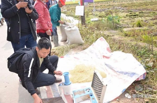 此次鄂中仟金方水稻示范田的現(xiàn)場觀摩測產(chǎn)是在無為縣土肥站農(nóng)技專家、鄂中生態(tài)農(nóng)化專員、渠道商、種糧科技示范戶、農(nóng)業(yè)專家及周邊種糧大戶的監(jiān)督見證下,按相關(guān)規(guī)范程序,公正合理完成的。觀摩測產(chǎn)采取現(xiàn)場抽樣調(diào)查方法、GPS測畝儀測定標(biāo)準(zhǔn)畝數(shù)、收割、稱重和先進(jìn)的谷物水分測定儀去除水分、運用“折干率”算出畝產(chǎn)值等規(guī)范操作流程。