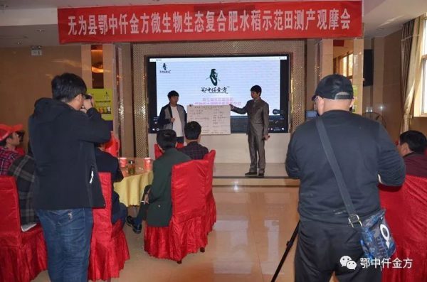 觀摩會后,又召開了鄂中仟金方微生物生態(tài)復(fù)合肥產(chǎn)品推介會,現(xiàn)場播放了仟金方的品牌故事,東南大區(qū)總經(jīng)理李九稽現(xiàn)場講解了仟金方作用機理及在全國各地的肥效表現(xiàn),示范戶俞建新現(xiàn)場講解仟金方施用過程,施肥技術(shù)等相關(guān)內(nèi)容。見證人共同發(fā)布了測產(chǎn)的真實數(shù)據(jù)和肥效。隨后無為縣鄂中代理商范躍明(電話:18325370099)與零售商、種植大戶進(jìn)行了座談交流。通過此次觀摩和座談,與會人員看到了鄂中仟金方肥料的品牌優(yōu)勢,極大的鼓舞了零售商推廣鄂中仟金方的信心,之前對鄂中仟金方持懷疑態(tài)度的種植大戶打消了疑慮,對鄂中仟金方有了新的認(rèn)識,對水稻種植表現(xiàn)和市場需肥潛質(zhì)有了更進(jìn)一步的認(rèn)識。紛紛表示鄂中仟金方今后將快速的推廣和購買。鄂中仟金方也將為糧食增產(chǎn)、減肥增效、提高農(nóng)產(chǎn)品品質(zhì)及農(nóng)民增收做出新的貢獻(xiàn),實現(xiàn)化肥施用量零增長目標(biāo)!