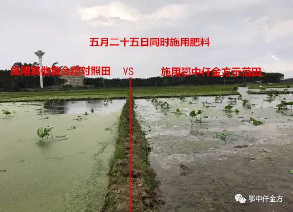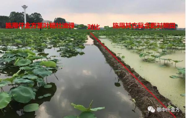四是防病抗?。菏痉短锱赃叺膶φ仗铮驗橛兴幒?,施用其他復(fù)合肥因為農(nóng)藥殘留沒有分解始終長不起來,藕農(nóng)已不報什么希望,施用仟金方的示范田,解除了前茬作物殘留和根系分泌物分解生產(chǎn)的有毒物質(zhì)及有害物質(zhì)。