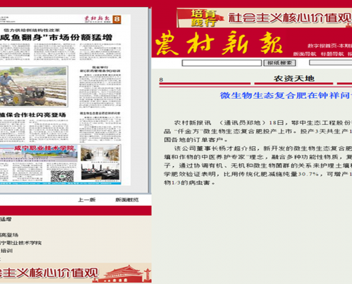 《湖北日報》-農(nóng)村新報刊出:鄂中“仟金方”微生物生態(tài)復(fù)合肥在鐘祥問世
